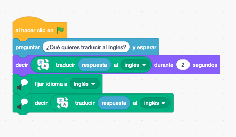 Vamos a hacer un traductor automático al inglés (Podríamos hacerlo a cualquier idioma) con las extensiones de Scratch